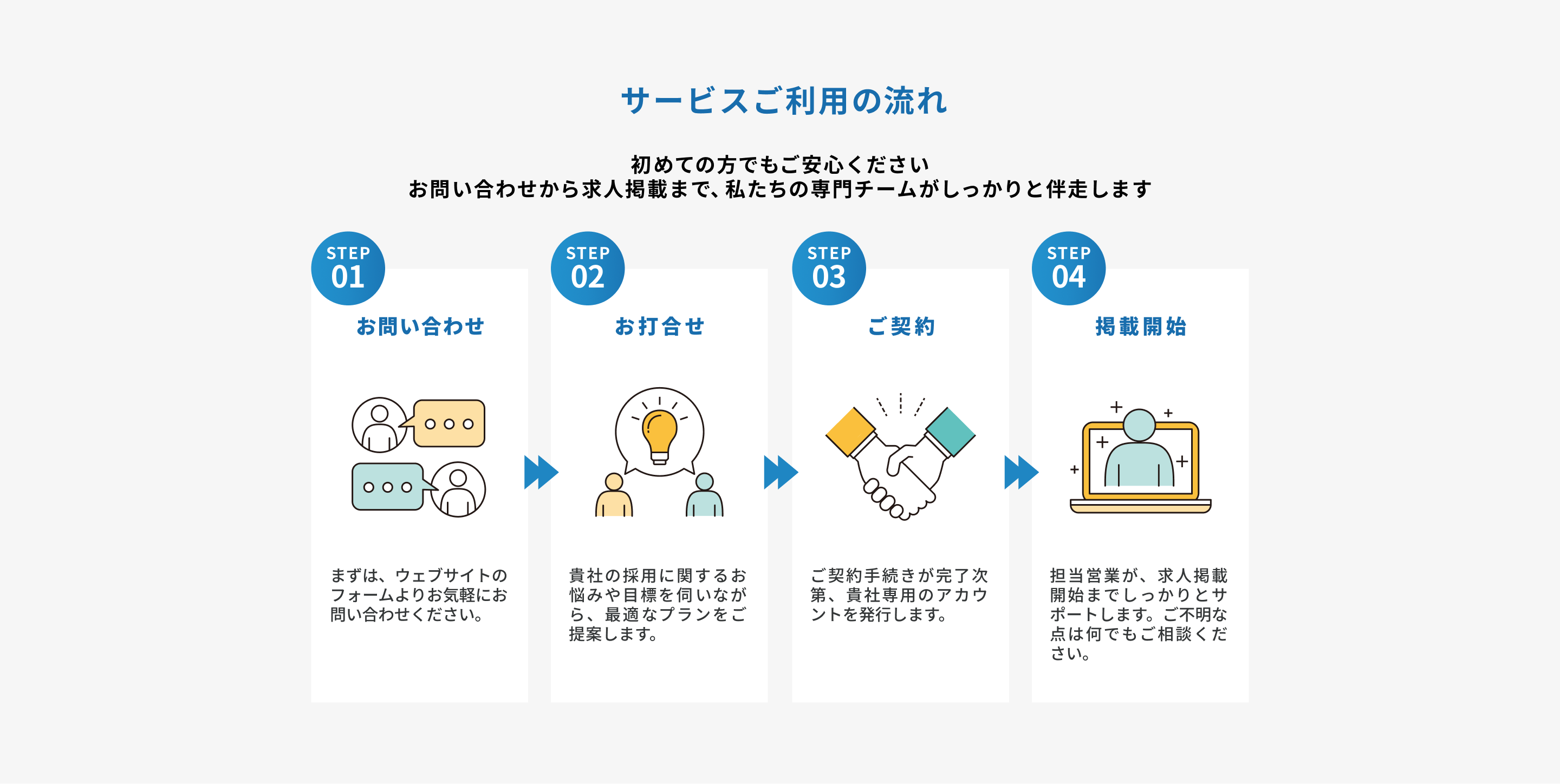 「リユース転職」を通じて、事前の打ち合わせで希望するスキル・人物像を明確にした上で求人公開したこと、選考の流れについてもアドバイスをもらっていたことから、面接〜内定までの流れがスムーズかつスピーディーになり、人材不足にも迅速に対応できた。通年を通して供給してもらえる体制が整い、急な欠員にも対応可能となった。